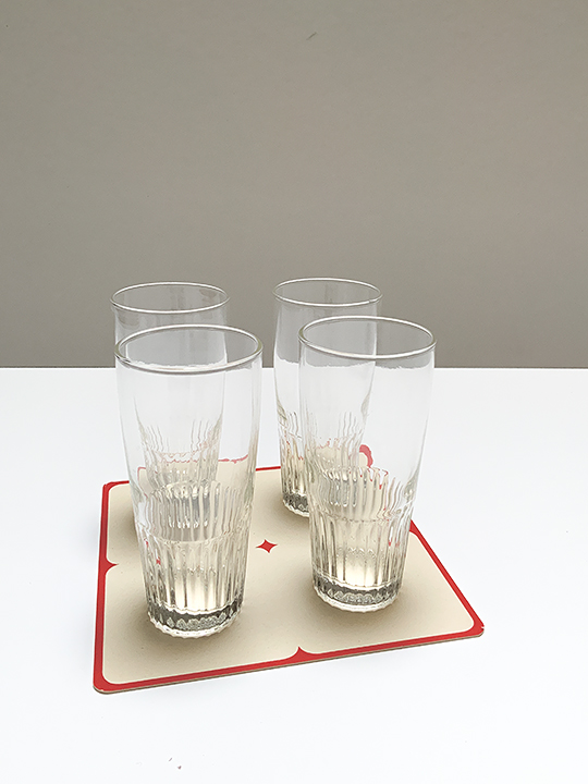 4 Durbor Gaetan beer glasses (32 cl), custom printed beer mat: silkscreen print on 1,5 mm wood pulp board