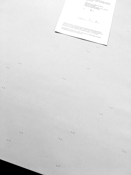 *With the intention of having a rather ambiguous relationship with time and history, I have stopped to date my work. Since a number of years, at the end of every title, instead of a number it states: n.d. (no date)