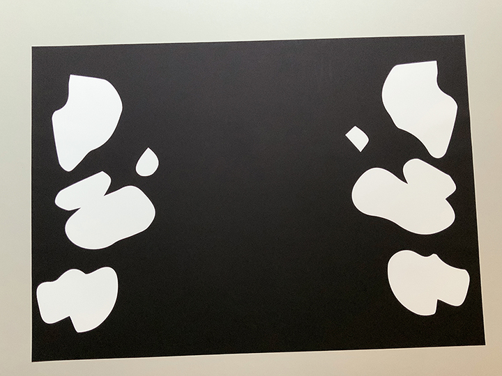 A reversed comic strip hero. For the edition the inkblot mask was isolated, reversed, mirrored and inverted. Left became right, black became white and vice versa.