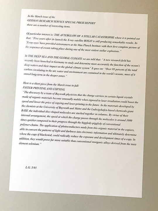 Liam Gillick - Extracts from The German Research Service Complete Archive, 1994/1995