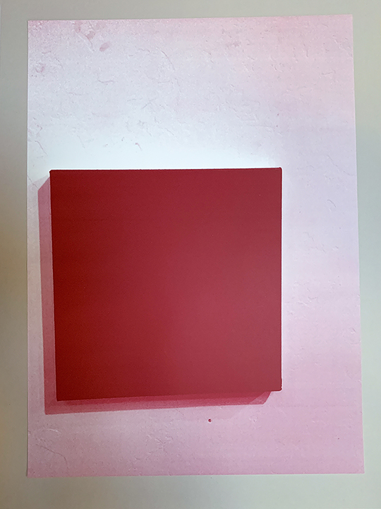 This photo was rendered in one monochrome layer and silkscreen printed in the exact same red as the original painting.