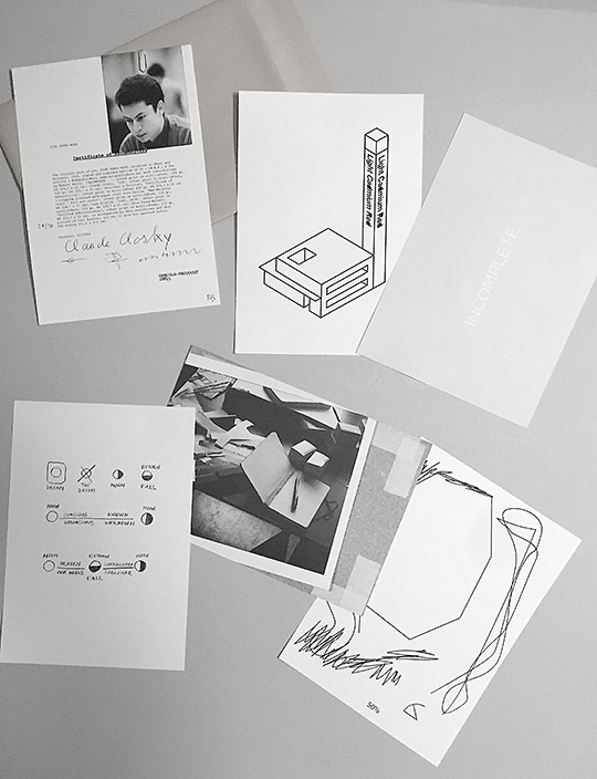 The folder contains prints by Robert Barry, Claude Closky Dora Garcia, Liam Gillick and Tris Vonna Michell, and is accompanied by a special cerrtificate by Denicolai & Provoost, signed by all artists.